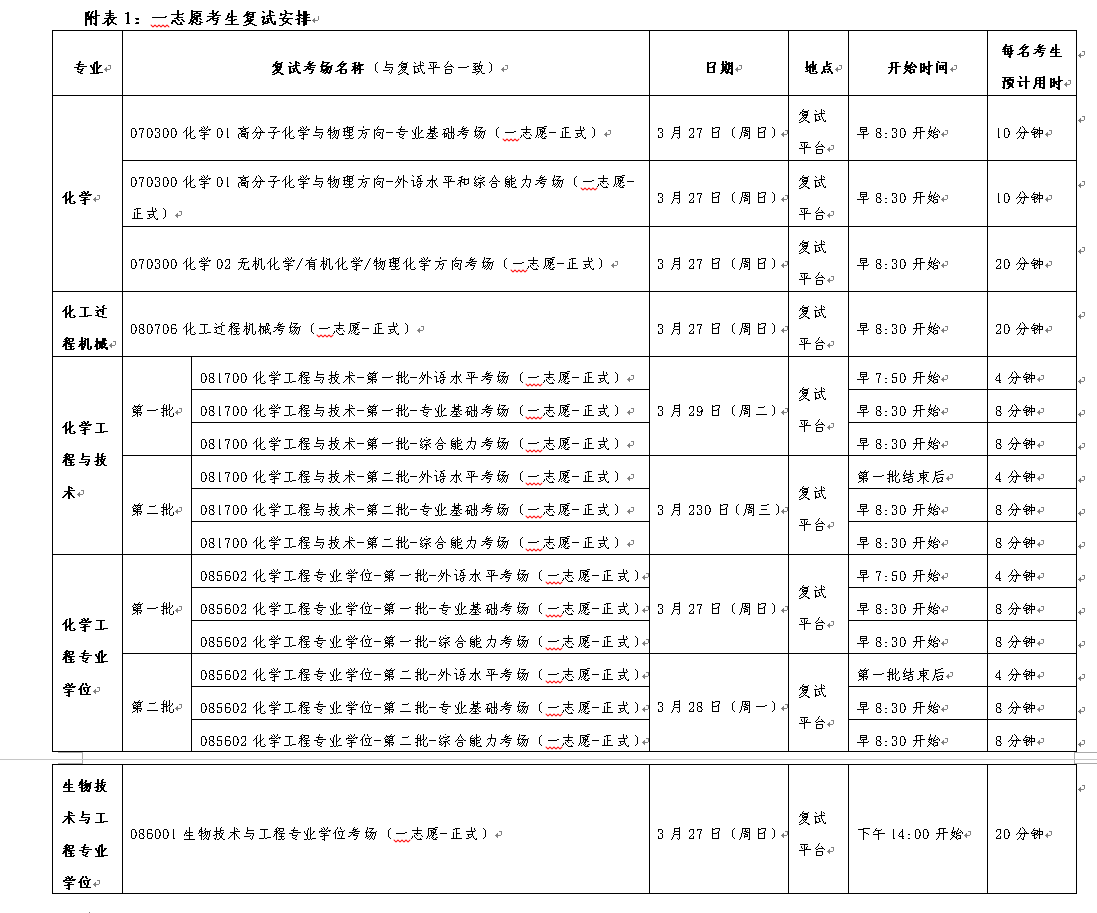 附图:化学工程与技术、化学工程专业学位各批次复试考生复试流程示意图