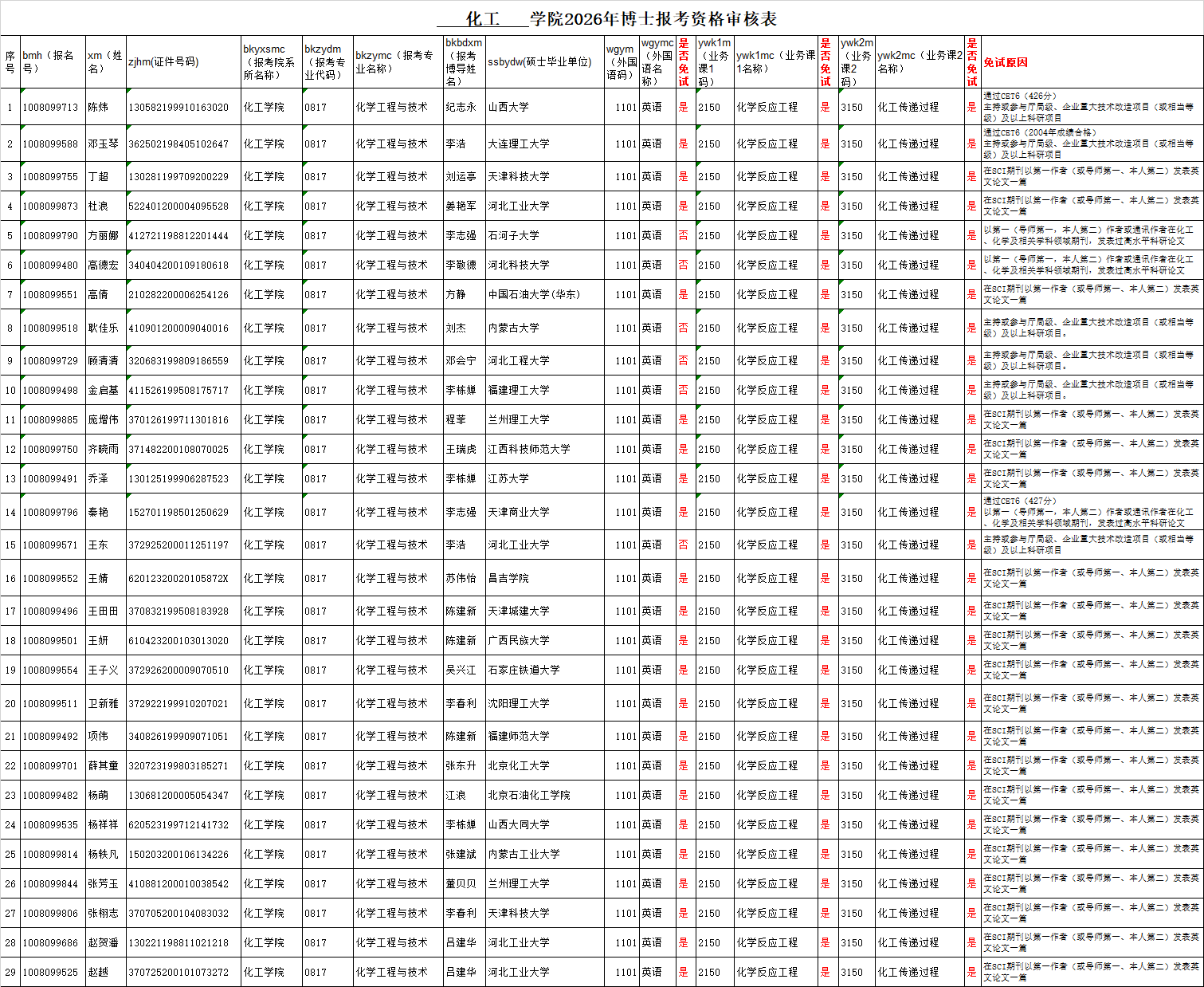 2026年河北工业大学“申请-考核”机制招收博士研究生初试将于4月18日进行,同日学院开展复试工作。根据学校安排,学院对报名考生进行了报考资格审核,经学校批准,现将审核及免试情况公布,共29名考生参加复试,名单见后。