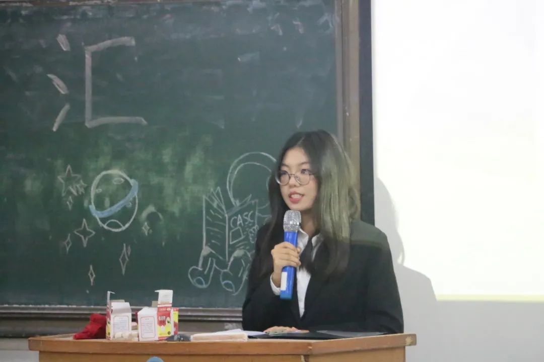 黄敬雯和王芊两位同学围绕“第二课堂发展历程,第二课堂管理体系,系统及小程序使用说明,学分获取流程,学分及其应用,督导体系”五个方面对第二课堂展开详细介绍。