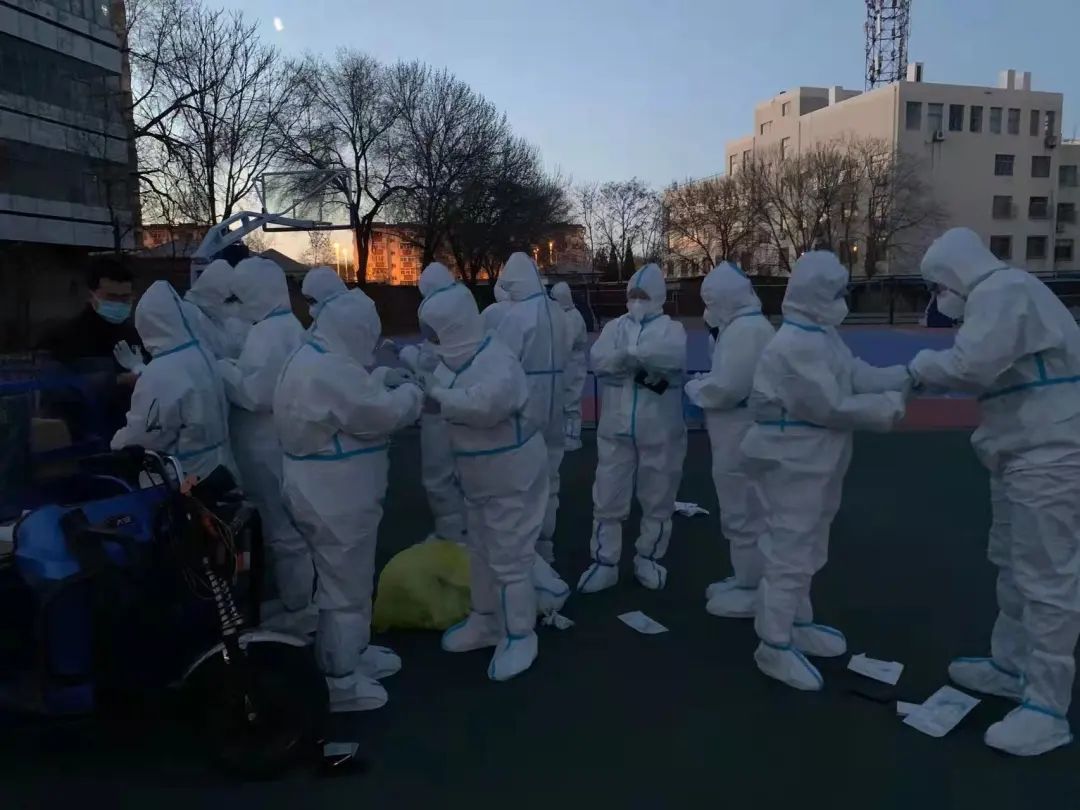 凌晨5点,威廉官网中国官方网站60余名志愿者已到达东院核酸检测点,靠着手机闪光灯微弱的亮光穿戴防护服,这已经是他们开学以来参与的第十三次核酸检测工作,每名志愿者早已对流程轻车熟路,但大家还是按照负责人的指示一丝不苟的完成准备工作的每一步动作。于此同时,负责场外的引领指示的志愿者也已到达各自的位置,等待着黎明的来临,也等待着各自工作的正式开始。
