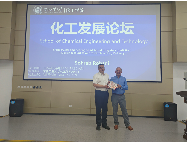 2024年6月4号上午第八十一期“化工发展论坛”学术报告在北辰校区化工楼A411成功举办,学院邀请了加拿大工程院院士、西安大略大学化学与生物工程系教授Sohrab Rohani教授做了题目为《From crystal engineering to AI-based cocrystals prediction – A brief account of our research in Drug Delivery》的学术报告,报告会由威廉官网中国官方网站院长王瑞虎主持。