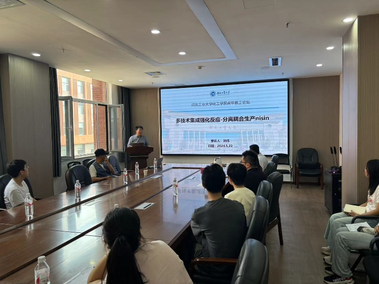 我院刘伟副教授作了题为《多技术集成反应-分离耦合强化nisin生产》的学术报告,nisin是目前世界卫生组织唯一批准可用于食品保鲜的细菌素,为了增加发酵生产nisin的产量,从外源因素刺激和产物原位分离两个角度进行了技术集成工艺开发,并对强化机理进行了深入分析。