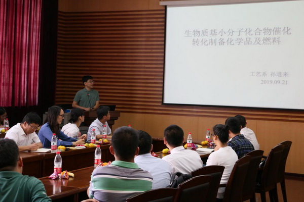 会议首先由特邀嘉宾张紫辉教授作题为《Numerical modelling and experimental demonstration for Nitride and SiC optoelectronic and electronic devices》的学术报告。张教授系统介绍了其所在课题组在第三代半导体器件构建和应用方面所开展的研究工作及成果,并结合其个人经历分享了如何选题、更好的开展科研工作等方面的心得体会。特邀报告后,化学工艺系青年教师代表孙道来副教授以及李敬德副教授分别做了《生物质基小分子化合物催化转化制备化学品及燃料》和《多尺度模拟应用于催化及电池材料的理性设计》的学术报告,简要介绍了其研究方向及成果。