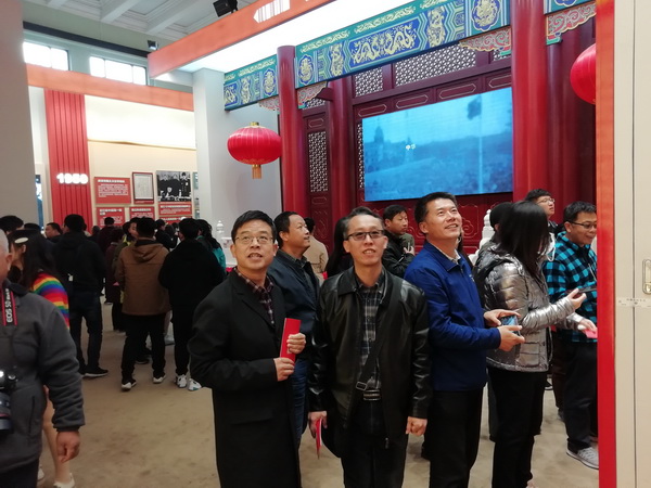 这次展览充分运用声光电等多媒体科技展示手段,展示了新中国波澜壮阔的发展历程、感天动地的辉煌成就。一个个高光时刻,一个个历史瞬间,一个个再现场景,此外还有7面英雄楷模墙、60个关键指标、十几块橙红色主题展板……这条“时光隧道”深深吸引着我们每一位教师的眼球,大家认真听着讲解,不时发出赞叹,有的驻足仔细观看文字介绍、有的拿出手机拍下这一辉煌历程,都切实感受到了新中国的伟大历程和辉煌成就。1978年恢复高考、1998年抗洪救灾、2006年青藏铁路全线建成通车等一系列场景再现把人们的记忆又拉回到那一重要时刻,尤其对一些经历过的教师来说,颇有感触,都被这些伟大得成就所影响着、感动着。