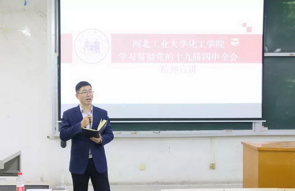11月29日下午,我院党委在7C208召开全院教职工专题会议,学院党委书记郭宏飞代表学院党委传达、宣讲了中国共产党第十九届中央委员会第四次全体会议精神。会议由学院党委副书记副院长张跃庭主持。