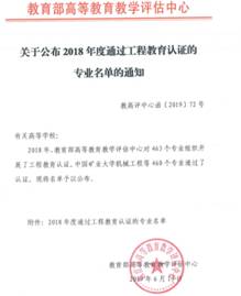 近日,教育部高等教育教学评估中心、中国工程教育专业认证协会正式发布《关于公布2018年度通过工程教育认证的专业名单的通知》(教高评中心函[2019]72号)和《关于公布北京工业大学机械工程等460个专业认证结论的通知》(工认协[2019]25号),公布了2018年全国工程教育专业认证的认证结论,其中我校威廉官网中国官方网站高分子材料与工程专业名列其中,顺利通过工程教育专业认证,并将纳入《华盛顿协议》互认名单。通过专业认证,标志着我院高分子材料与工程专业的人才培养质量实现了国际实质等效,进入国际工程教育的“第一方阵”。