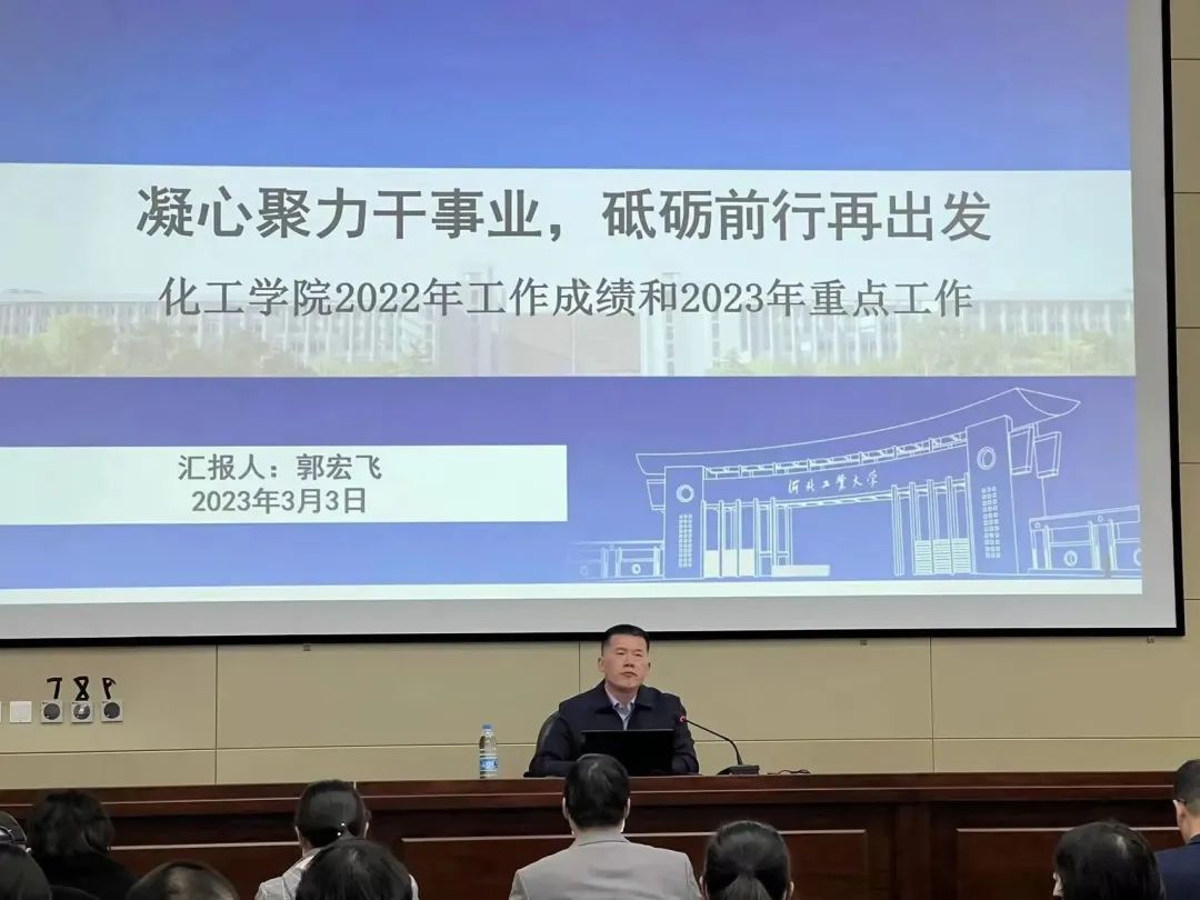 2023年3月3日,威廉官网中国官方网站召开教职工大会,威廉官网中国官方网站党委书记郭宏飞、党委副书记兼副院长张跃庭、副院长张少峰、副院长姜艳军、海水资源高效利用化工技术教育部工程研究中心副主任兼副院长曹吉林、化工节能过程与资源利用国家地方联合工程实验室副主任兼副院长贺亮及学院全体教职工出席本次会议,会议由张跃庭副书记主持。